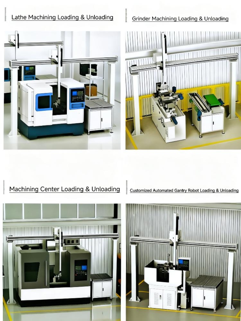 A gantry robot customized based on enterprise production line layouts and workpiece sizes (e.g., heavy-duty parts, long shaft parts). It connects multiple pieces of equipment via rails to achieve cross-station and long-distance automatic loading and unloading, flexibly adapting to non-standard production scenarios.